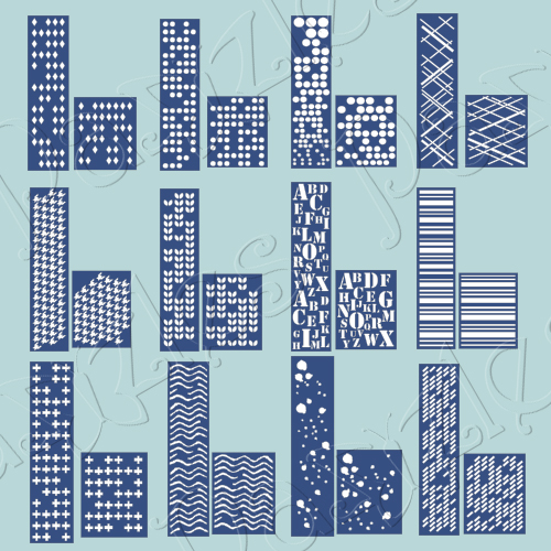 The Mixed Media Cutting Collection includes 12 scrapbook border sized stencils and 12 card sized stencils.