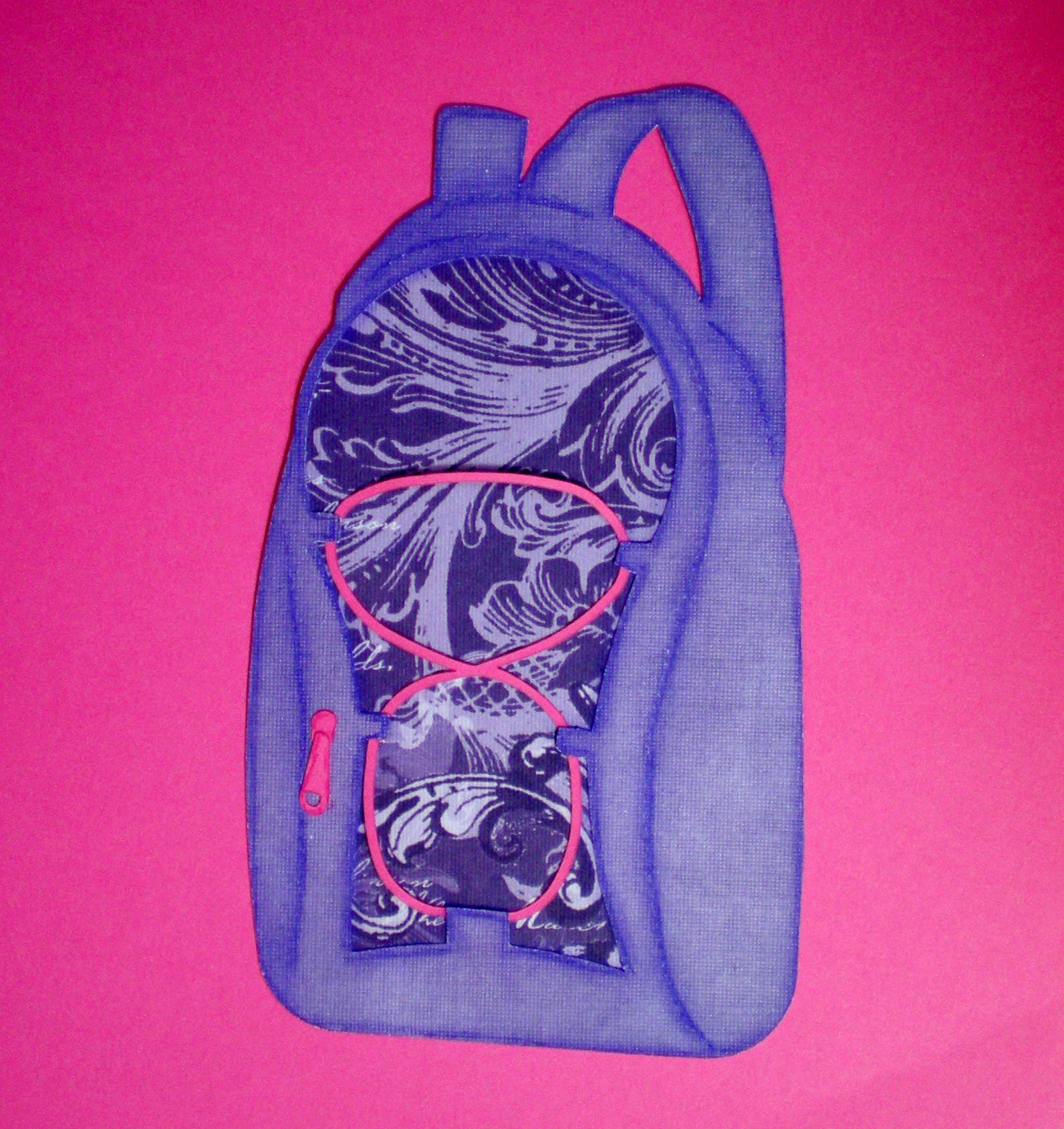 I wanted the backpack to be the focal point of the page. I found lots of clipart for backpacks online and found one that suited my needs. It was easily converted to cutting lines using auto trace. (Oh, how I love my Inspiration Studio Software!) I changed the pockets a little and added some pencils and scissors which I created by using the Draw Circle and Draw Rectangle tools. I also added stitching which I drew with a white gel pen and the Pazzles pen tool. I had so much fun with this project. In fact I have included the cutting file and the instructions for the page.