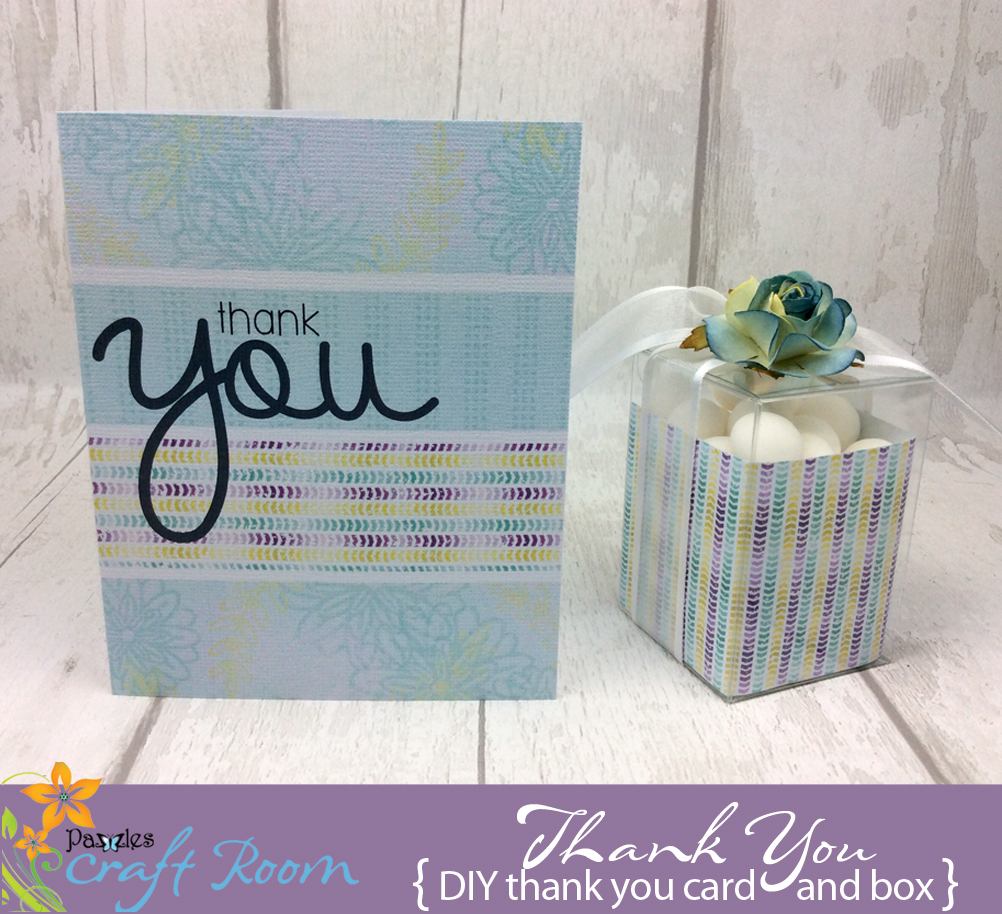 To make my little candy gift I printed one of the designs from the paper pack and trimmed it to fit inside my acetate box so that it coordinated with the card.